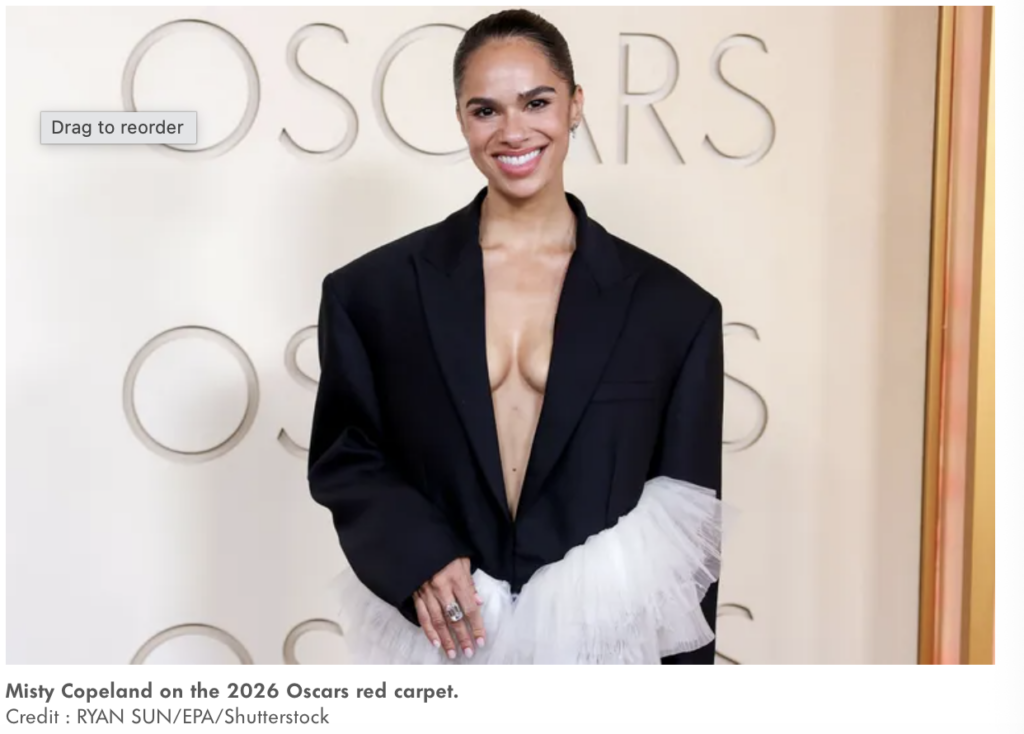 Misty Copeland Brings Ballerina-Coded Tutu Look to 2026 Oscars Red Carpet, Proves People Do Care About Ballet